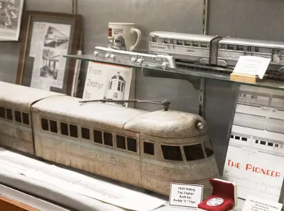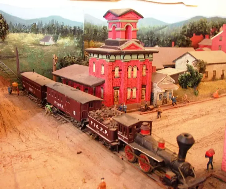 The museum depicts different equipment and trains on the layout and in a few showcases in the museum. Our collection contains things such Martin Phelps personal gear from his time serving in the military to an actual Civil War cannon ball hidden in one of the back showcases. Most of our other depictions are that of models and dioramas of the battlefield in the showcases surrounding the layout. On the layout itself we have a military style train that carries equipment, tanks, and vehicles; there is also a military base, located in our ‘Harbor Division’. The largest display in this collection is the naval ships built by a Pearl Harbor survivor.